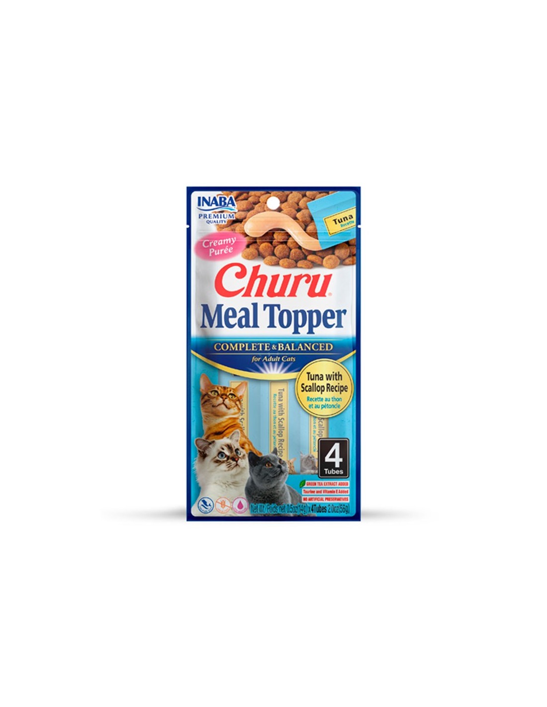 Agua, atún, pollo, almidón de tapioca, vieira, sabores naturales, goma guar, sabor natural de atún, carbonato de calcio, taurina, suplemento de vitamina E, clorhidrato de tiamina, cloruro de colina, oleorresina de pimentón (color), extracto de té verde, minerales (sulfato de zinc). , sulfato de magnesio, sulfato ferroso, quelato de aminoácidos de cobre, yoduro de potasio, quelato de aminoácidos de manganeso), vitaminas (complejo de bisulfito de sodio de menadiona (fuente de actividad de vitamina K), acetato de vitamina A, suplemento de vitamina D3, riboflavina, suplemento de vitamina B12, fólico Ácido)