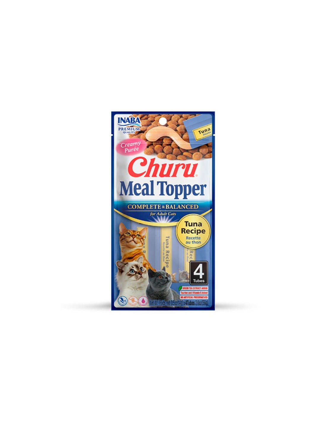 Agua, atún, pollo, almidón de tapioca, sabores naturales, goma guar, sabor natural de atún, carbonato de calcio, taurina, suplemento de vitamina E, clorhidrato de tiamina, cloruro de colina, oleorresina de pimentón (color), extracto de té verde, minerales (sulfato de zinc, magnesio). Sulfato, sulfato ferroso, quelato de aminoácidos de cobre, yoduro de potasio, quelato de aminoácidos de manganeso), vitaminas (complejo de bisulfito de sodio de menadiona (fuente de actividad de vitamina K), acetato de vitamina A, suplemento de vitamina D3, riboflavina, suplemento de vitamina B12, ácido fólico)