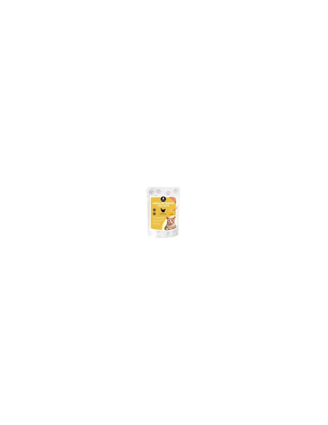 La crema natural de pollo para gatos está recomendado para facilitar la digestión, hidratar y enriquecer el pienso habitual.