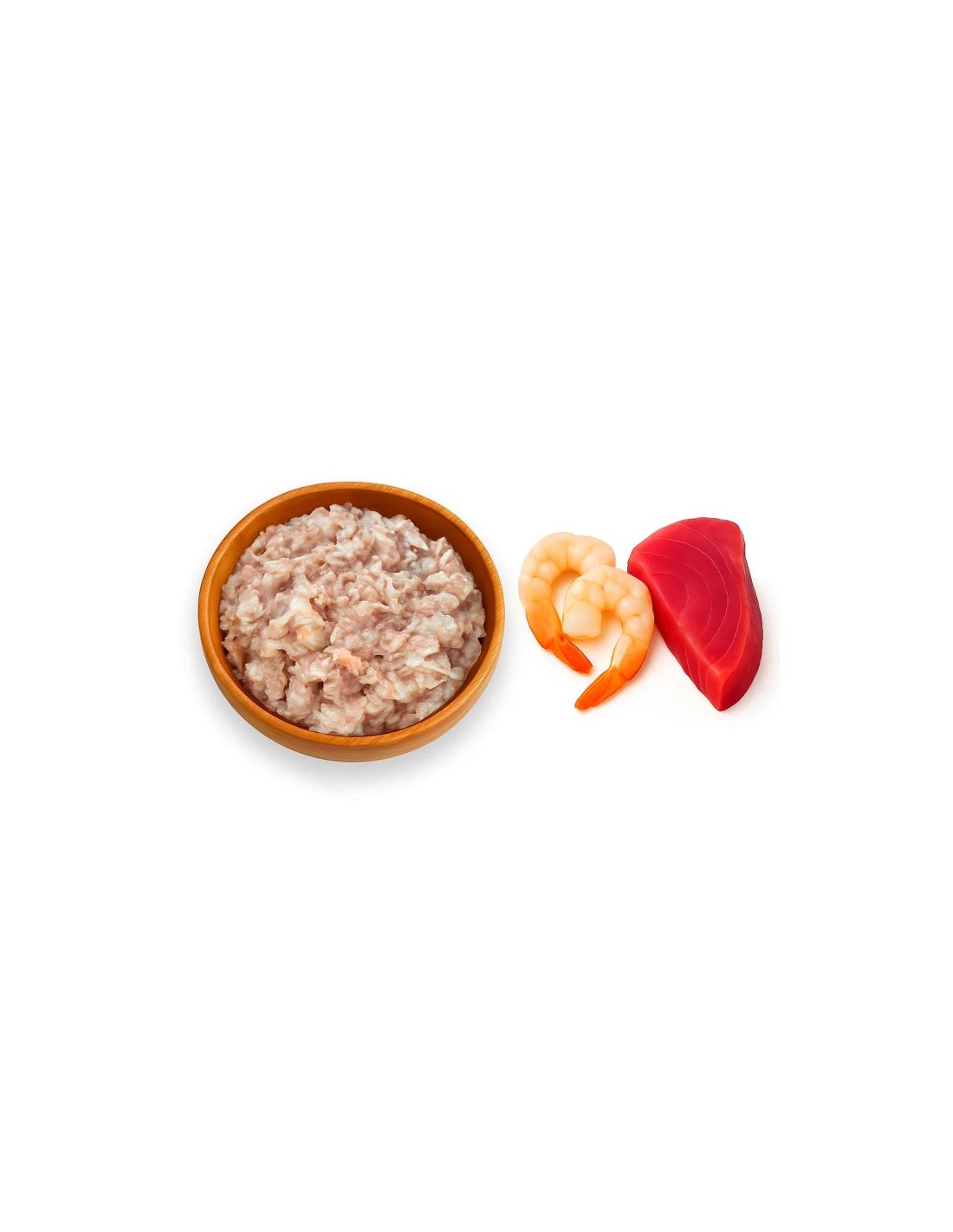 Alimento complementario 100% natural, con auténtico atún y gambas en gelatina suave.