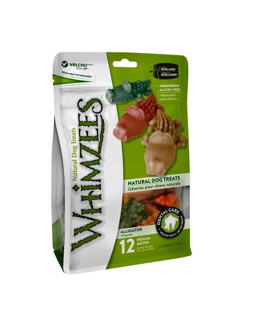los snacks para perros whimzees cocodrilo dental son golosinas para mascotas que están elaboradas con ingredientes vegetales naturales cuidadosamente seleccionados. su base de almidón de patata es perfecta, ya que inyecta una dosis de energía a tu mejor amigo a la vez que es muy digestible y no contiene gluten.