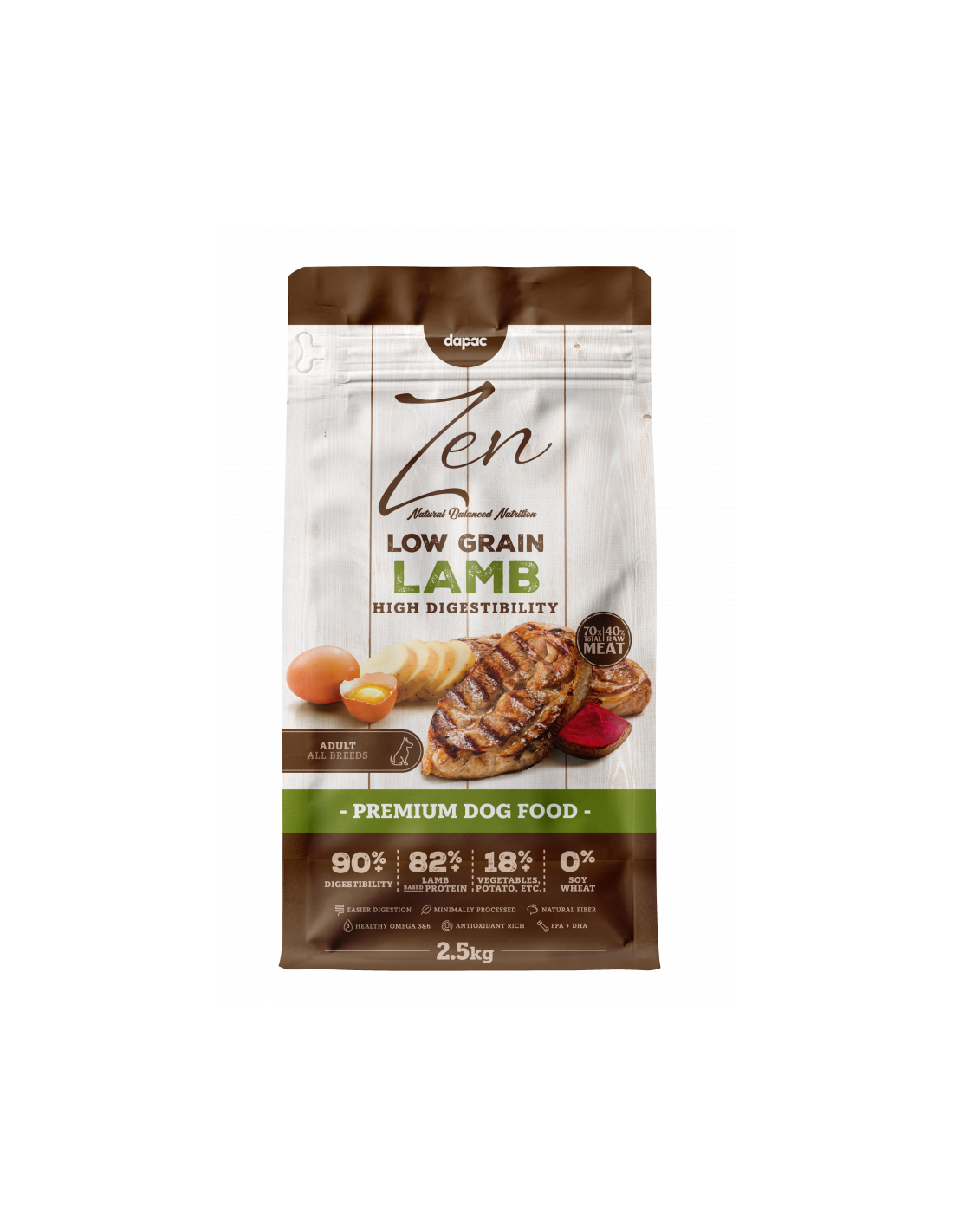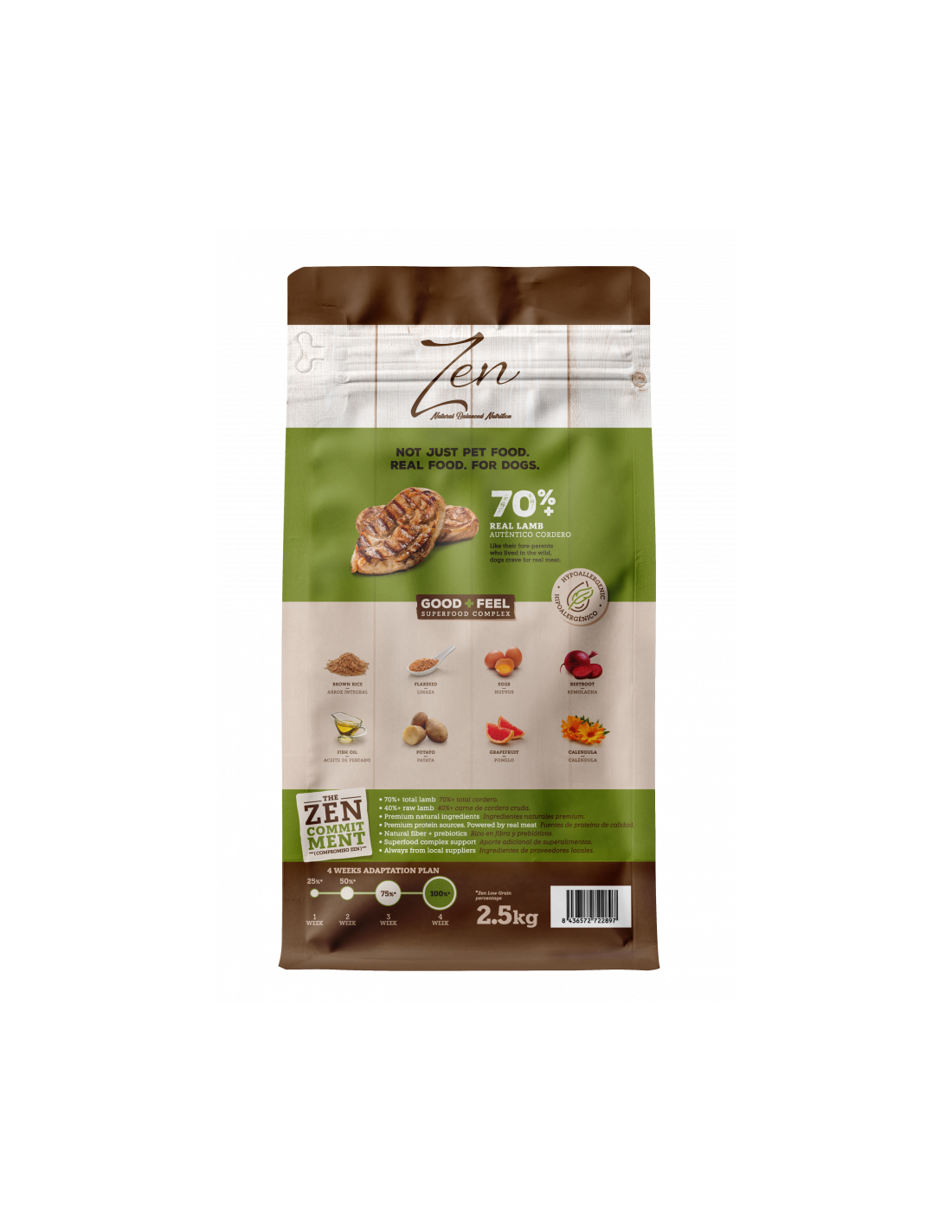 adult lamb es la apuesta de zen low grain por una receta de cordero para perros adultos de cualquier raza a partir de los 12 meses de edad. un alimento premium completo que cuenta con un 70% de auténtico cordero y 40% carne de cordero fresca.