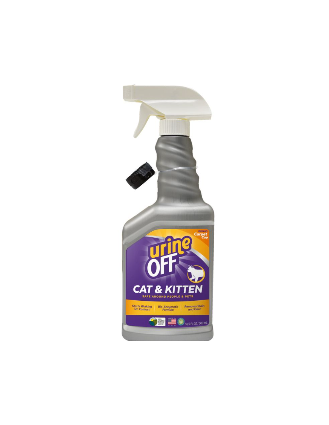 Urine Off se fabrica en los Estados Unidos y es increíblemente efectivo y es el producto más recomendado por veterinarios para eliminar las manchas y los olores.