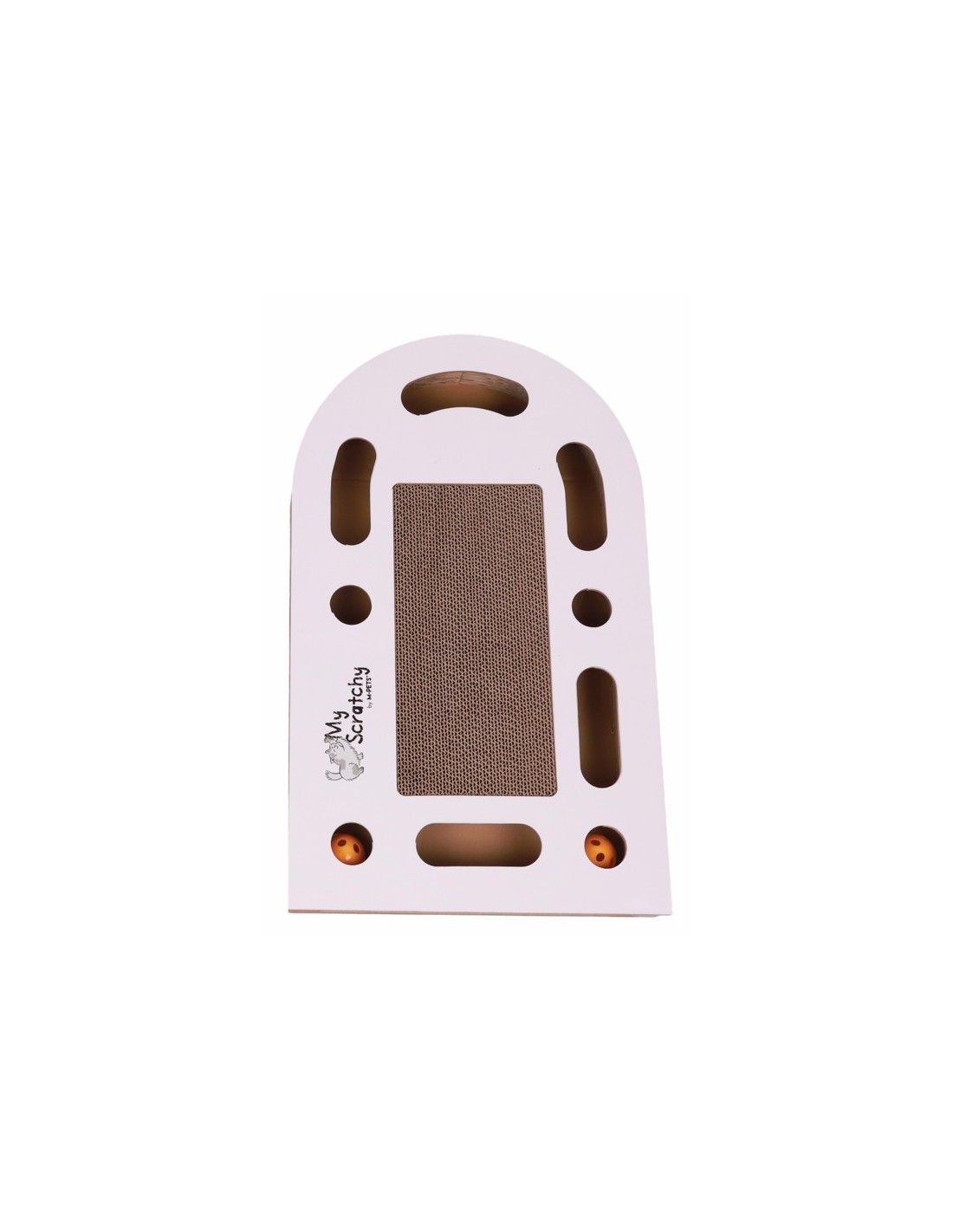 Consiente a tu gato con los nuevos rascadores de cartón corrugado de M-PETS® 2 en 1, con un laberinto con dos pelotas de cascabel en su interior.