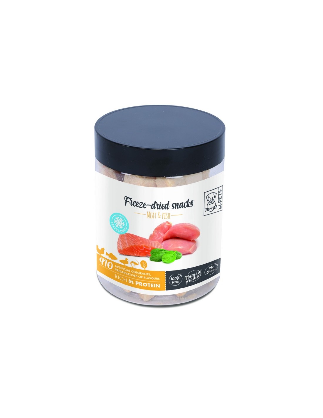 m-pets snack liofilizado pollo, salmón y pato con espinacas