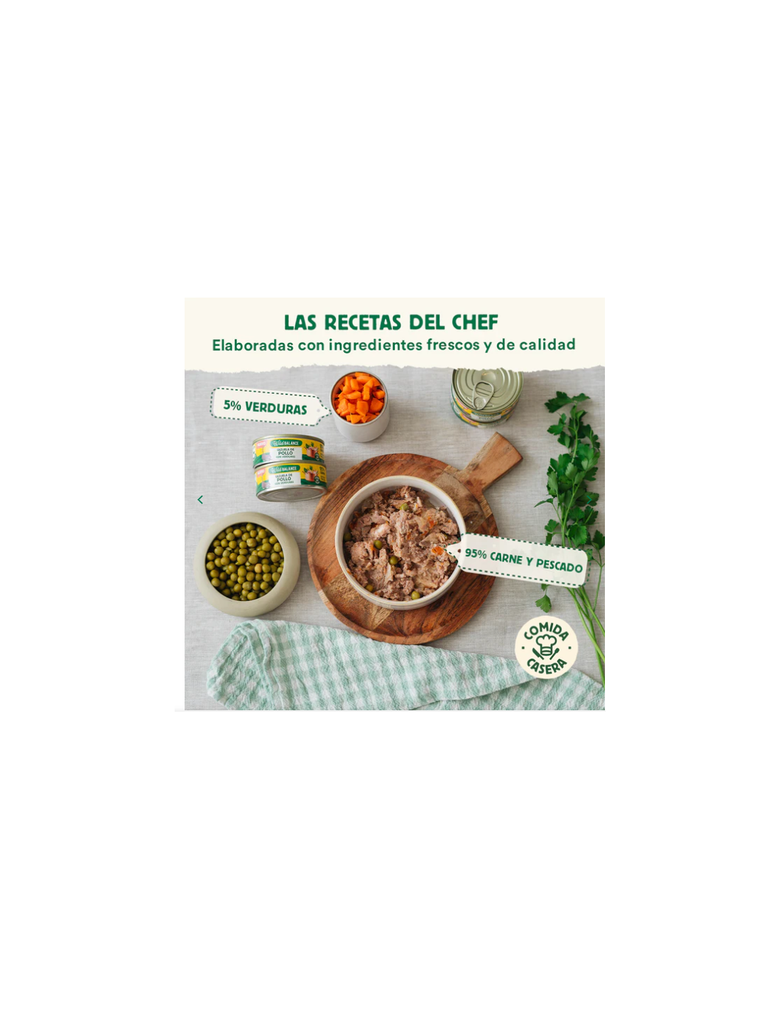 Alimento completo para gatos. Ingredientes originariamente para consumo humano convertidos en comida para mascotas por motivos comerciales.